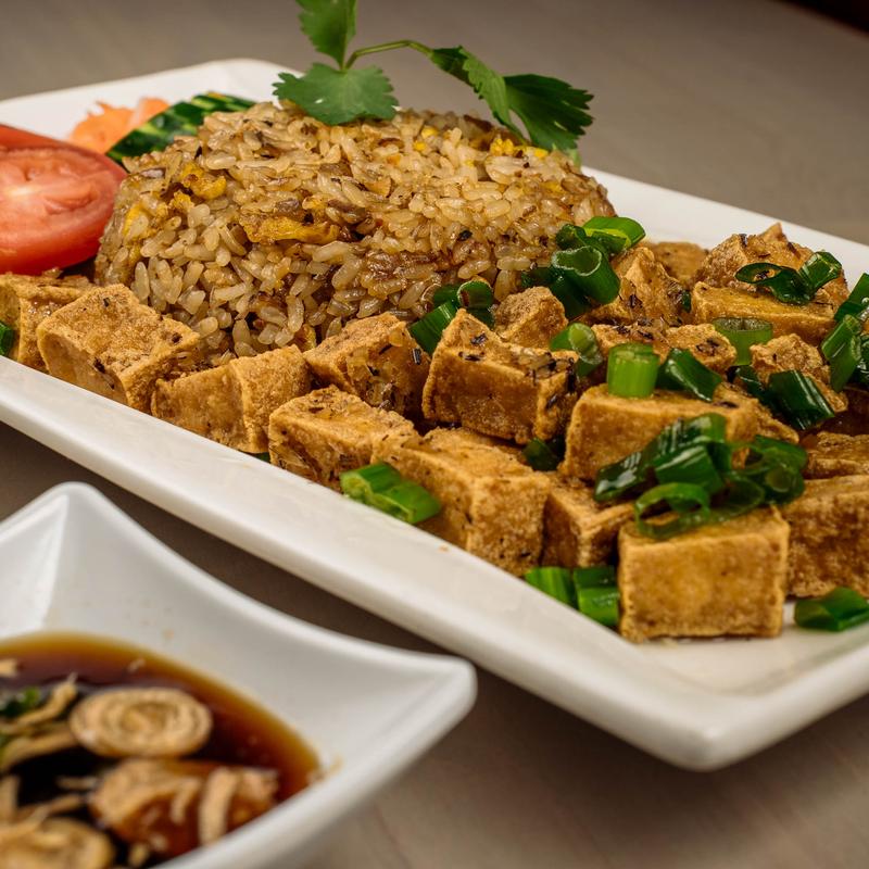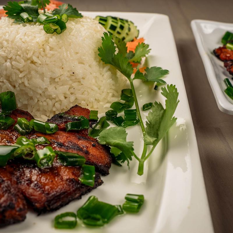 Featuring jasmine steamed rice served with fresh lettuce, sliced cucumbers, homemade pickled carrots & daikon, sliced fresh plum tomatoes, the protein of your choice, and topped with scallions. Want more flavorful rice? Try our special Vietnamese fried rice made with garlic butter instead of greasy oil, mixed with chopped onion, carrots, scallions, and eggs, seasoned with gluten-free soy sauce.