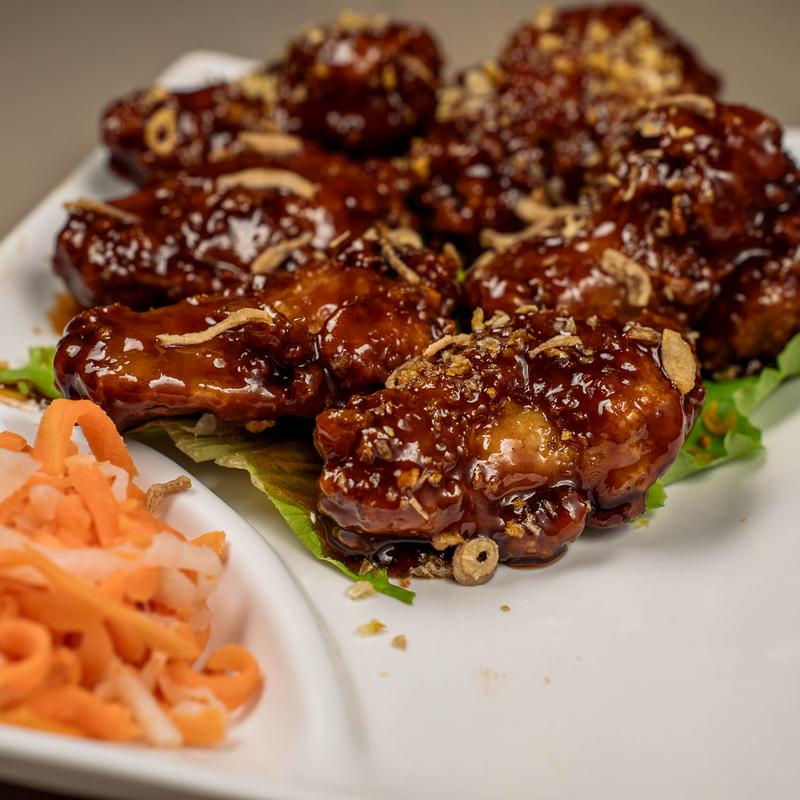 Breaded, crispy, crunchy chicken wings served with sides of pickled carrot & daikon and homemade spicy mayo sauce. Well-marinated wings with mild hot honey sauce, but still very crunchy. Try these special new wings today.