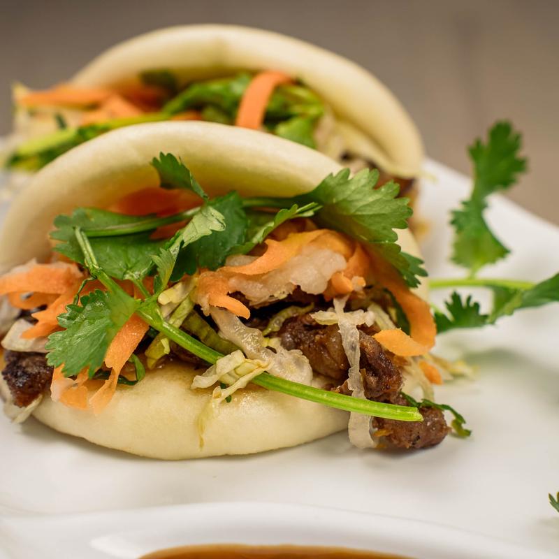 Pao stuffed with fresh lettuce, mints, pickled carrots & daikon, and the grilled meat of your favorite!